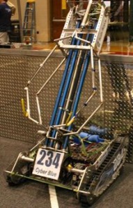 The focus of our strategy was to make sure we ended the match hanging from the chin-up bar to score fifty points. With our 24-inch pneumatic and 6-inch pneumatic pushing against each other, we created enough force to pull ourselves up with ease. This was the one constant throughout the 2004 season.
