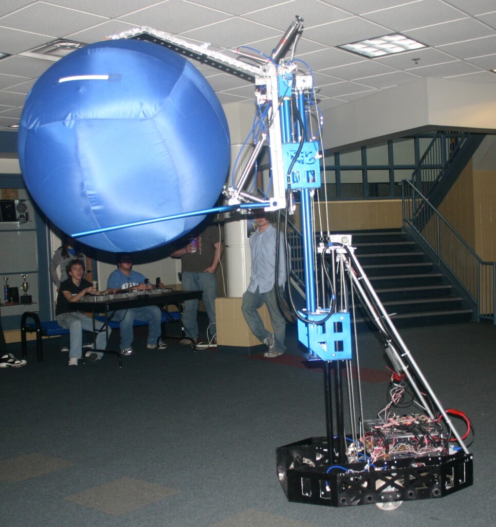 The ability to take a beating and still kick it into “overdrive” was this robot’s main asset, along with its ability to hurdle the ball over the overpass made us very competitive.